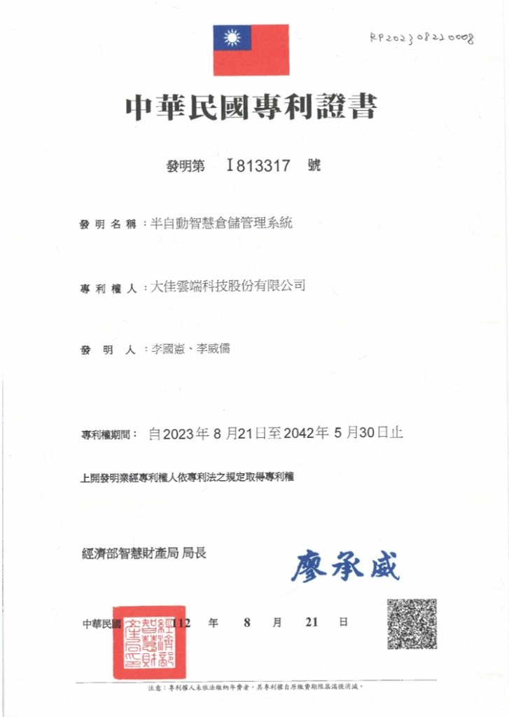 | 半自動智慧倉儲管理系統 ( 原:半自動倉儲系統 ( 暫 ) ) | 新型 |