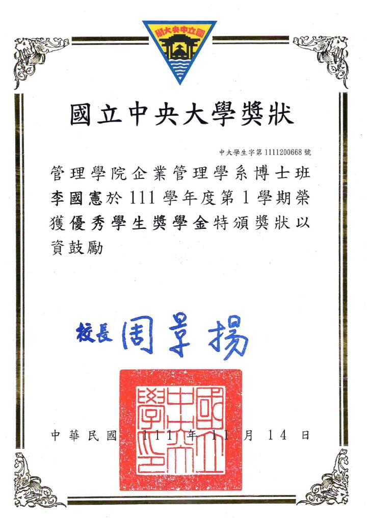 - 國立中央大學企業管理學系博士生