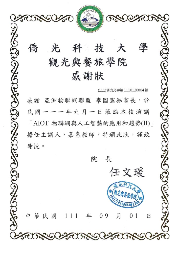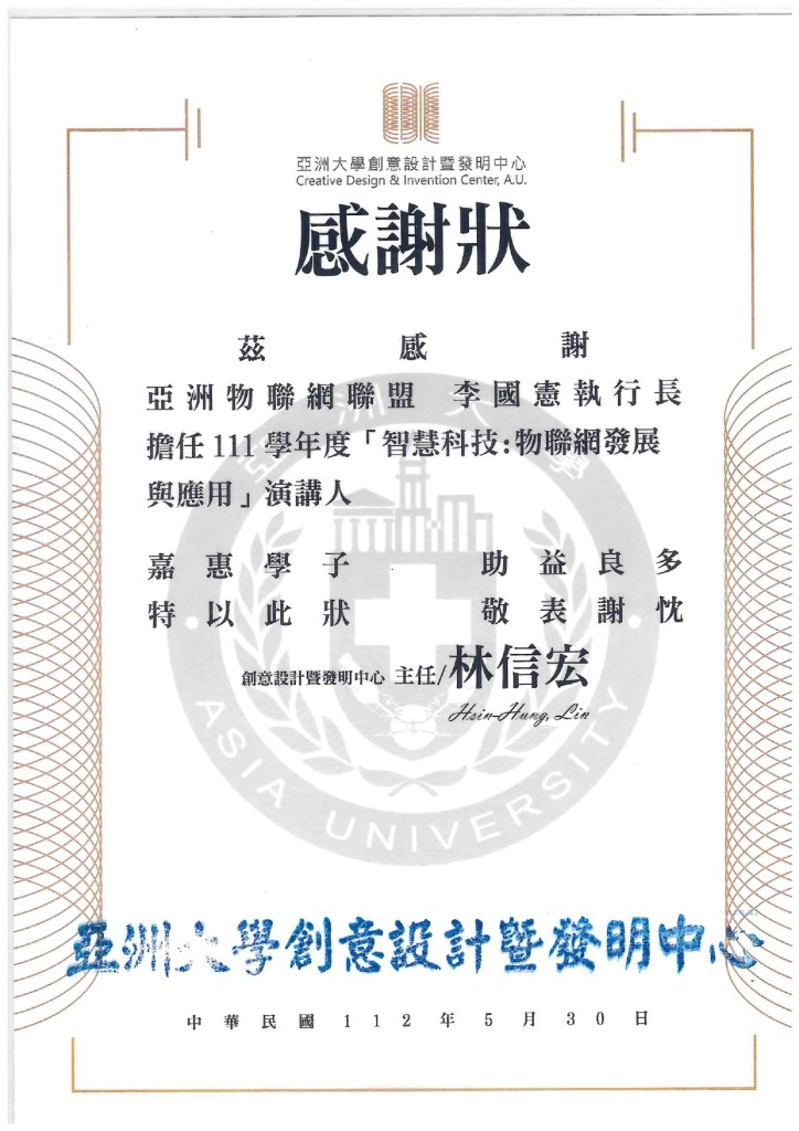 - 亞洲物聯網聯盟 AIoTA 執行長兼秘書長