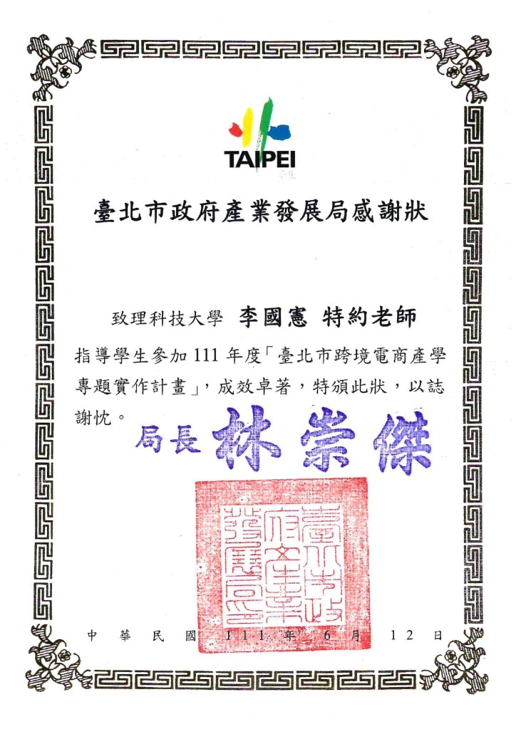 - 致理科大資訊管理系/多媒體設計學系/外貿學院兼任講師